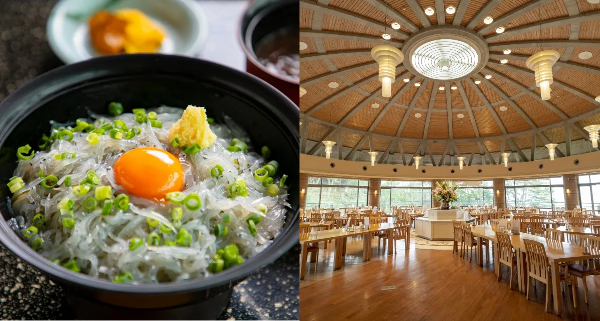 大人1,815円 小学生1,452円 幼児968円(税・配膳料込)太平洋を望むレストランで地元のお米「ひたち舞」や地魚の炙り焼きなど、地場の素材を味わう贅沢な朝のひとときを。