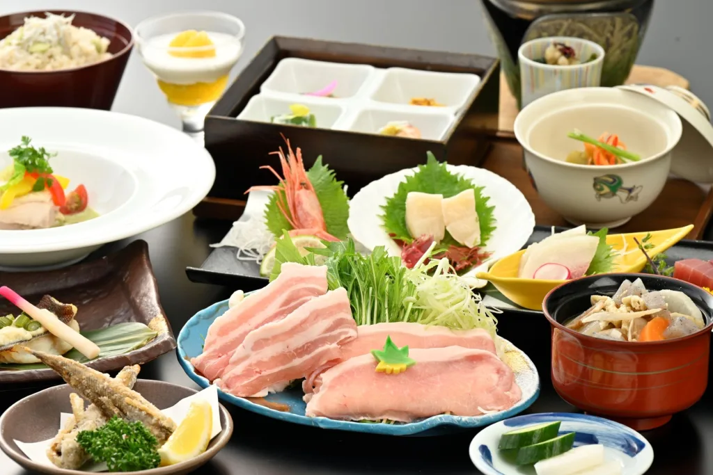 5,445円(税・配膳料込)茨城の銘柄豚”ローズポーク”と海鮮を味わうプラン