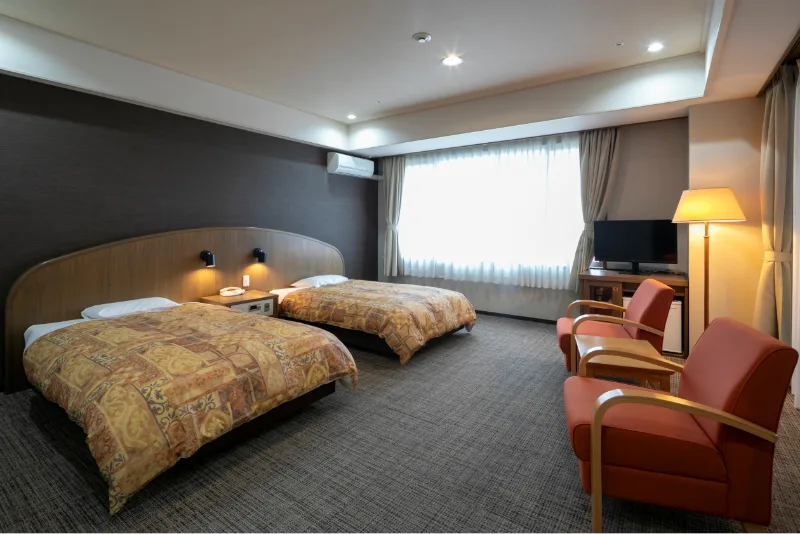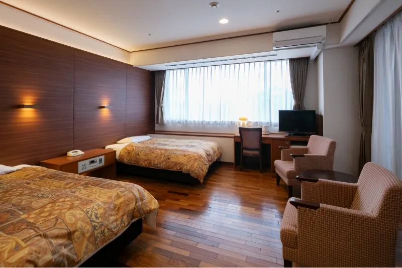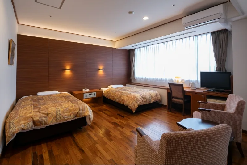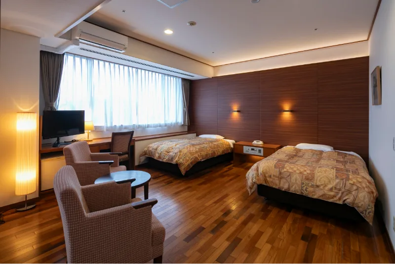 設備・アメニティ | テレビ、エアコン、空気清浄機、セーフティボックス、冷蔵庫、湯沸かしポット、お茶セット(無料)、トイレ(洗浄機能付)、ハンドウォッシュ、ハミガキセット、ヘアドライヤー、フェイスタオル、バスタオル、浴衣、スリッパ |
