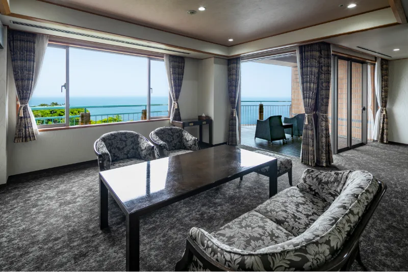 太平洋を臨みながらゆったりくつろげる室内は、開放感あふれる明るい空間になっております。